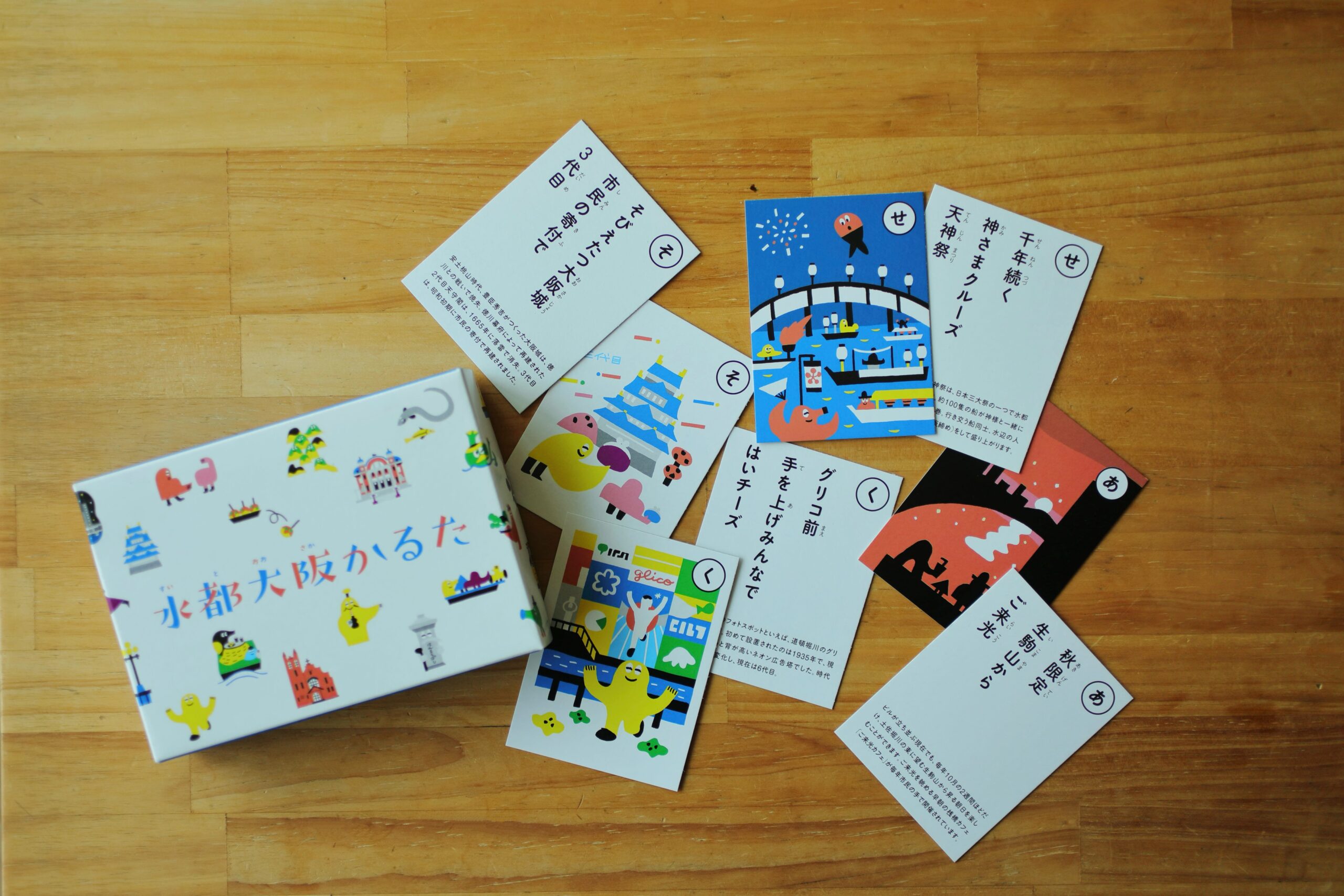 水都大阪の教科書は高校生以上を対象とした内容ですが、こどもたちにも水都大阪に親しんでもらえるように、「水都大阪かるた」も制作しました。